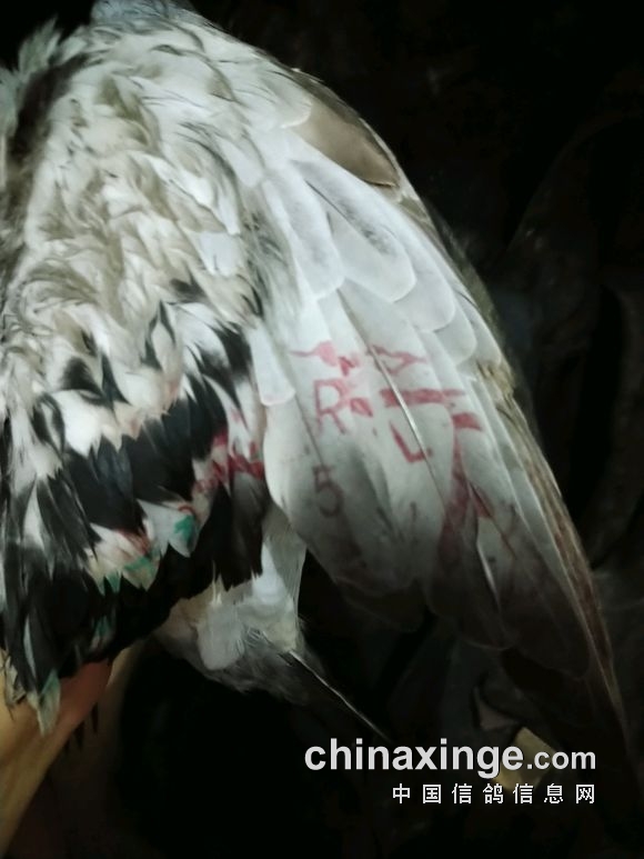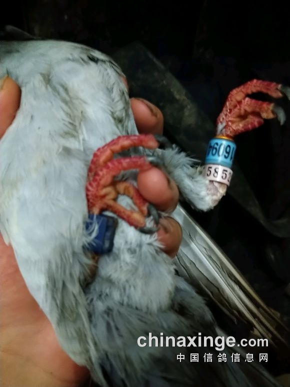 其实我和这个鸽子挺有缘分的,但是发现两只脚有环,一共3个环,一个是2019516094,还有一个是58522,另外一个是没有东西的,不知道是不是放信的,而且羽毛也有盖着印章。