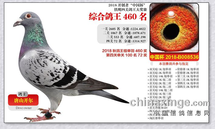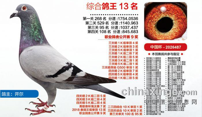 同时在北京开创,2018年开尔还斩获四关综合38名/职业鸽舍5名、85名,职业鸽舍四关综合32名、85名等出色成绩。