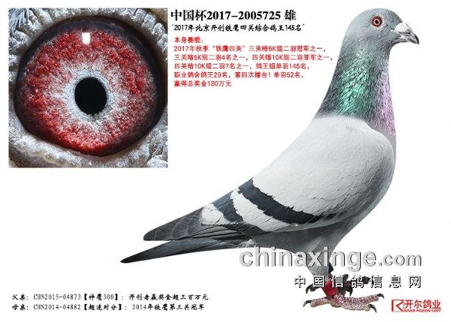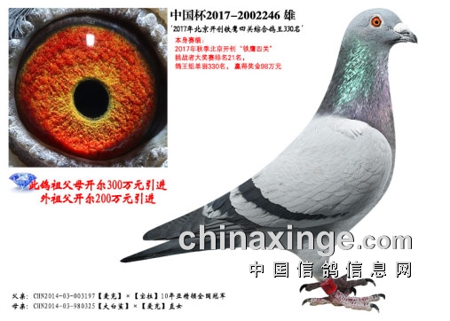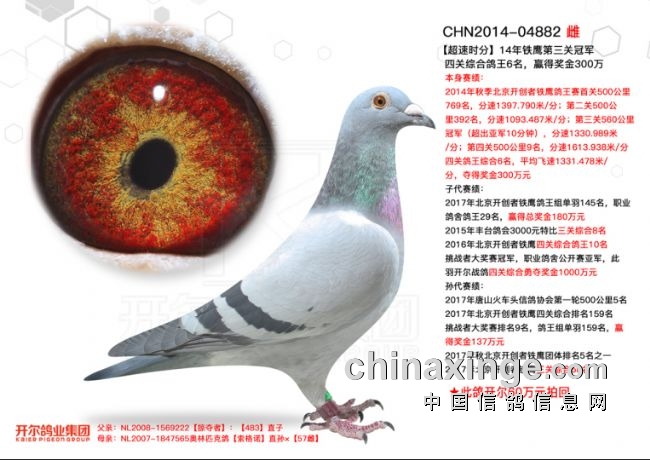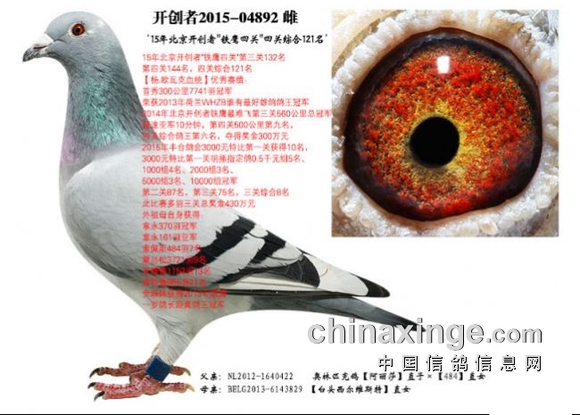 再来看看其他开尔赛将们的精彩战绩:【神鹰300】:2015年北京开创者四关综合鸽王13位,明指加暗插赢得奖金超300万元!!!