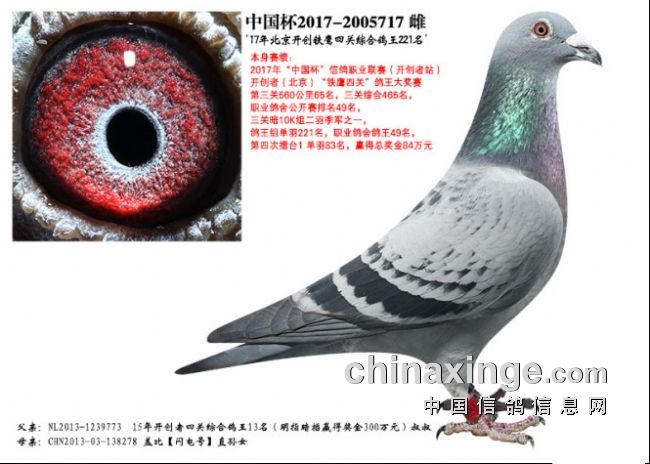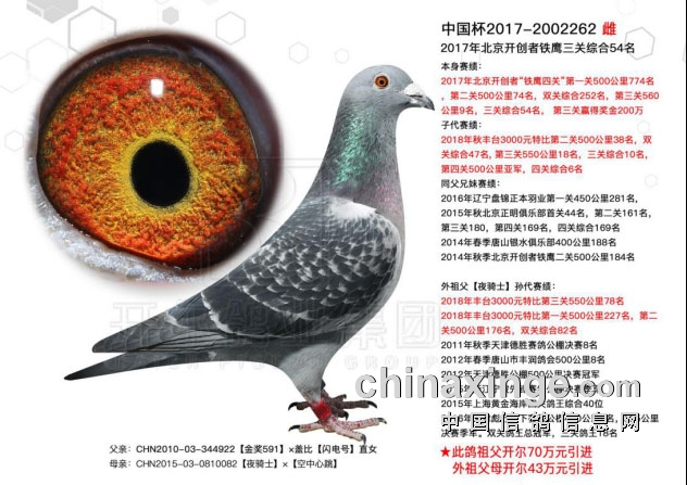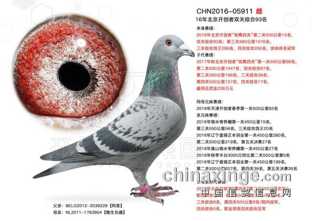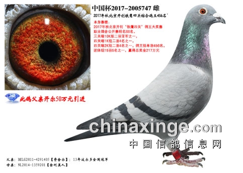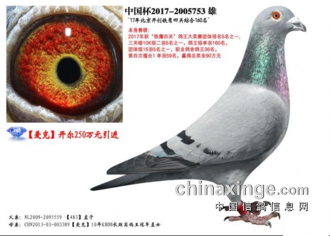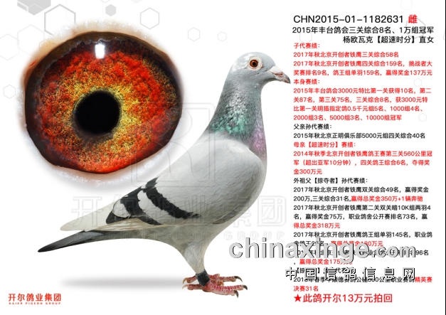 杨欧瓦克【483】直子×【爱克】直女:2017年北京开创者职业鸽舍鸽王36名,赢得总奖金90万元