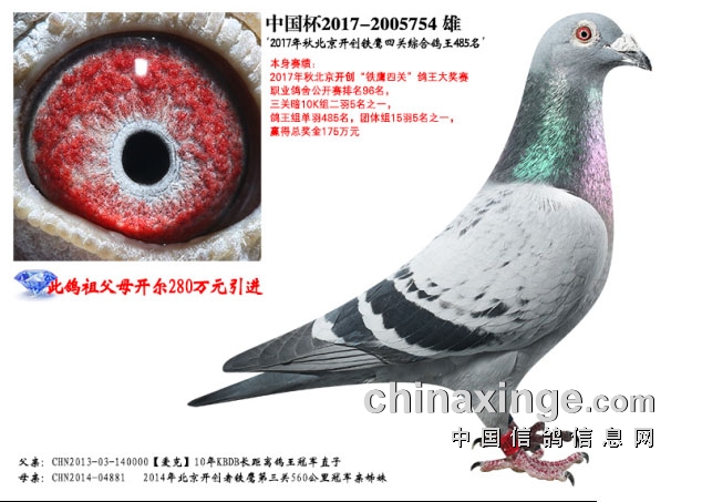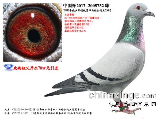 出自【超速时分亲妹妹】04881:2017年北京开创者职业鸽舍公开赛排名96名,赢得总奖金175万元